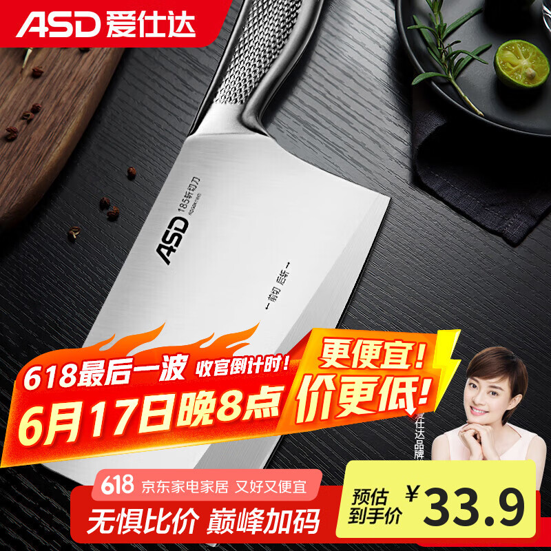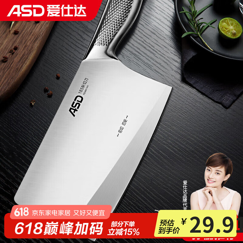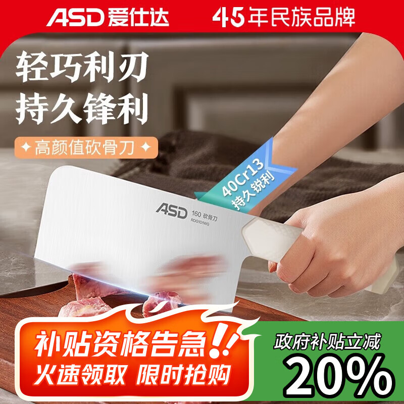 爱仕达(ASD)菜刀剁骨刀厨房刀具40Cr13mov不锈钢单刀家用砍骨刀RDG1D1WG