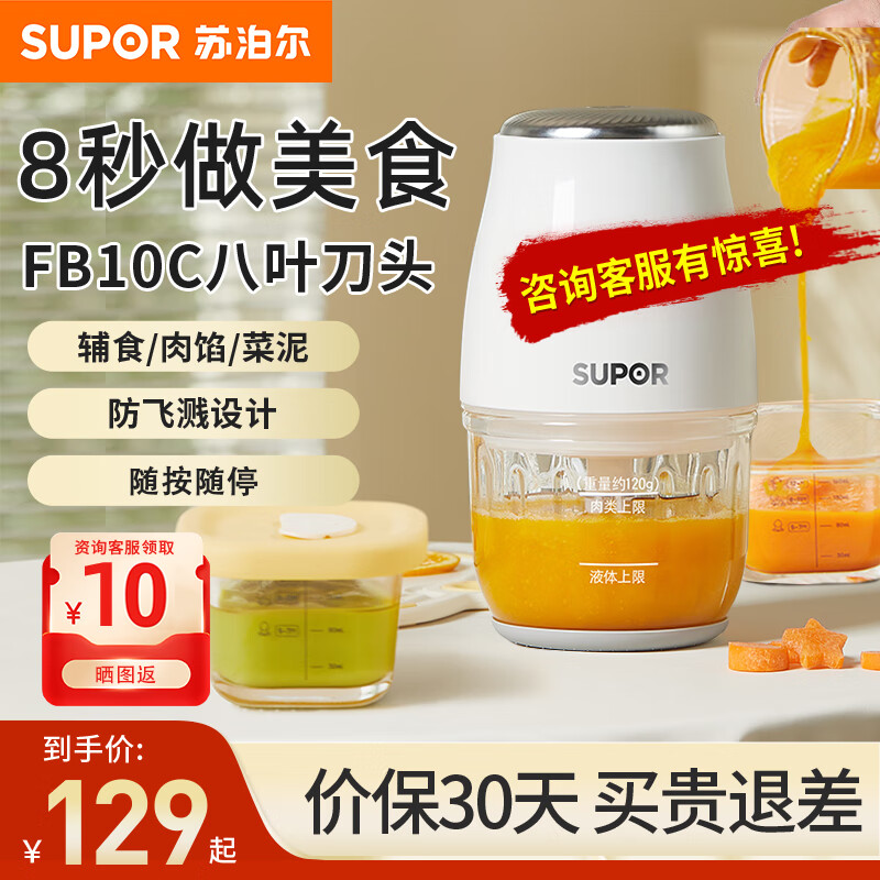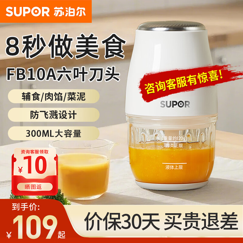 苏泊尔(SUPOR)婴儿辅食机 多功能宝宝辅食工具 小型料理机 8叶单杯单刀 FB10E