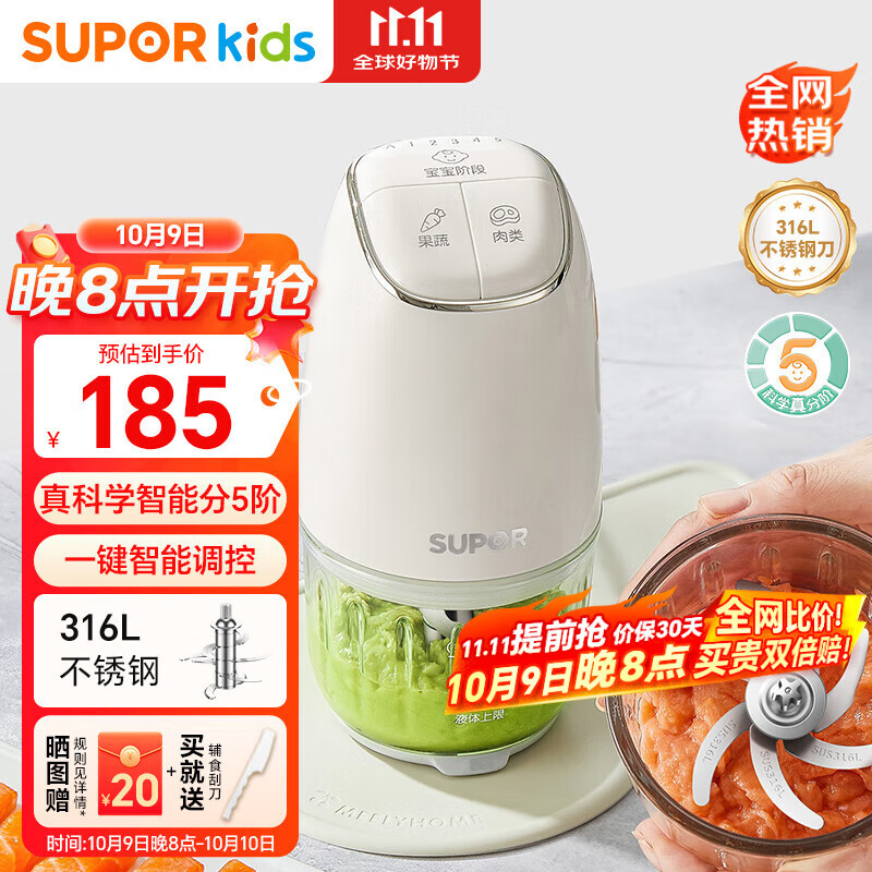 苏泊尔(SUPOR)分月龄辅食机 多功能宝宝辅食工具 婴儿料理机 8叶单杯单刀 FB16C