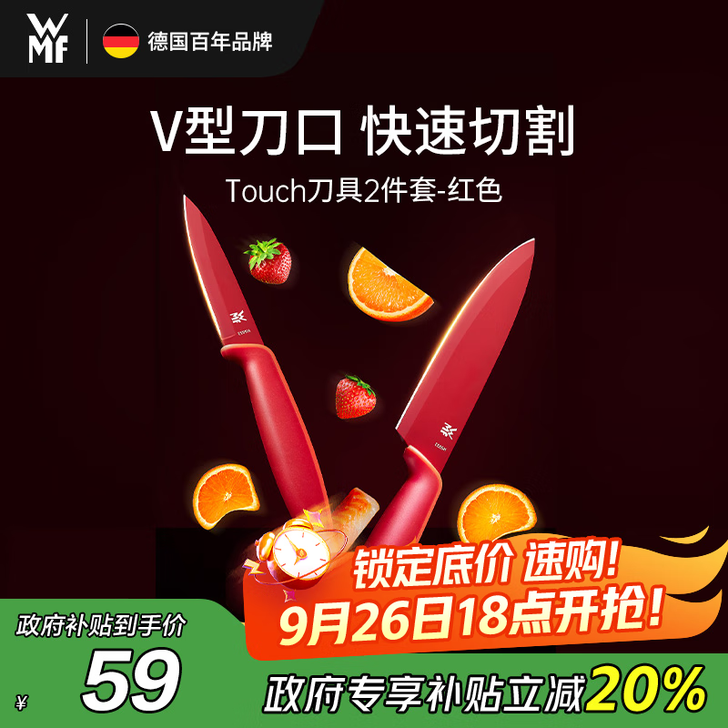 WMF福腾宝厨房刀具套装水果刀切菜刀Touch小红刀2件套-红色厨房好物