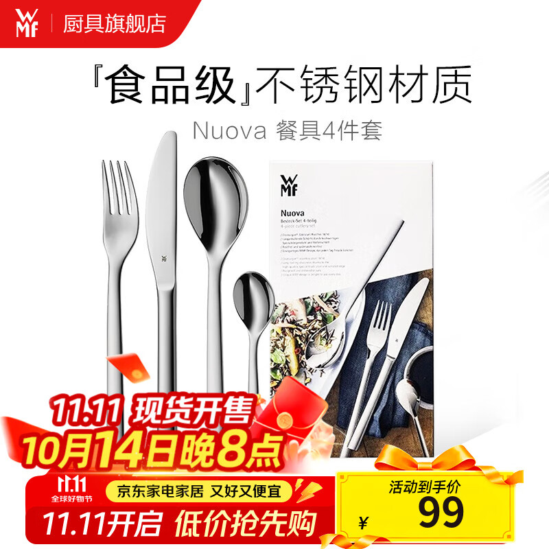 WMF福腾宝 不锈钢餐具刀餐叉勺汤勺叉子组合轻奢餐具 家用送礼品团购 Nuova 餐具4件套