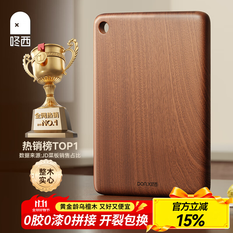 咚西乌檀木整木切菜板南非进口实木抗菌防霉双面案板厨具砧板大号耐砍 【乌檀木整木】40*28*2.5cm(适用4-6人)