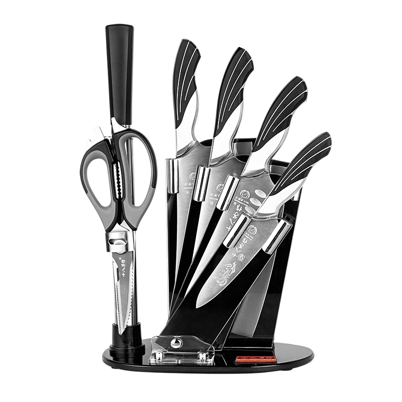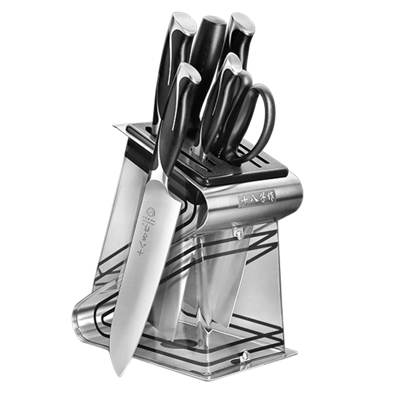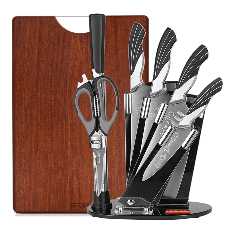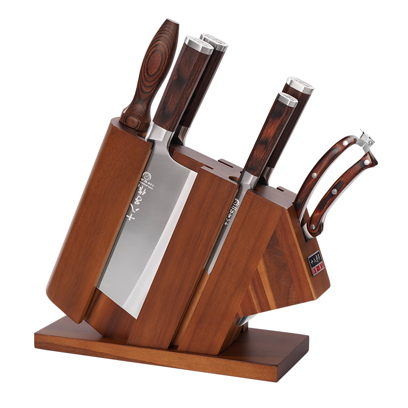 十八子作可放砧板复合钢刀具套装彩木柄菜刀组合七件套刀【精美礼盒装】