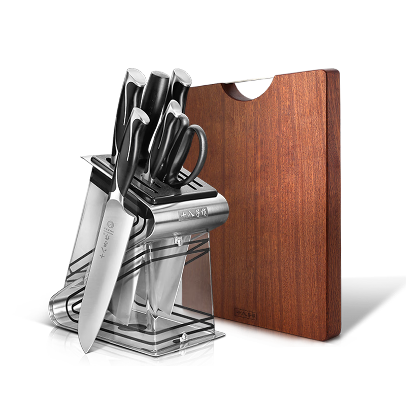 十八子作厨房刀具菜刀套装家用砧板砍斩骨刀剁切肉切片刀阳江十八子菜刀 砧板刀具组合装【JD-25】 8件套