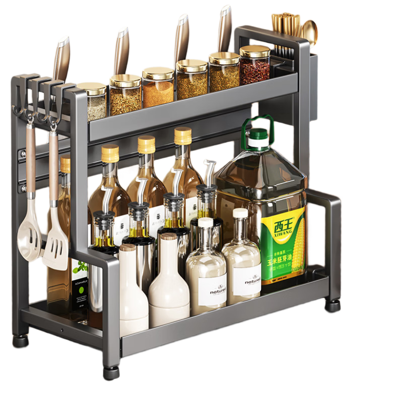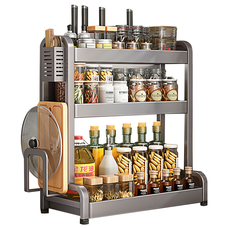 帅仕(shuaishi)厨房调料置物架台面调味品佐料瓶收纳盒用具大全刀架筷子筒砧板架 枪灰全配-3层34cm【升级加粗】