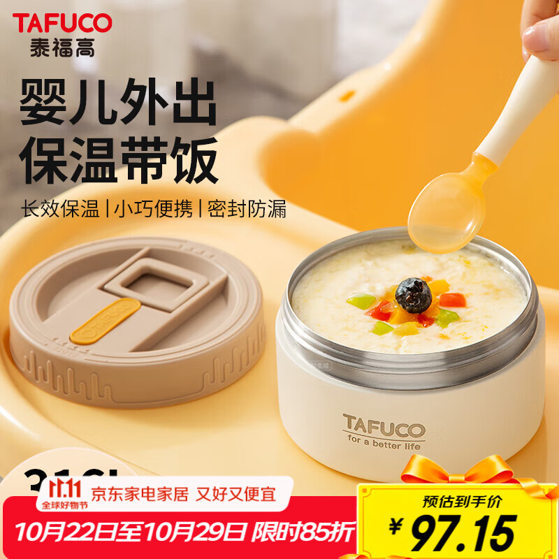 泰福高(TAFUCO)316L不锈钢真空保温饭盒宝宝辅食便携餐盒中小学生便当盒 T5398