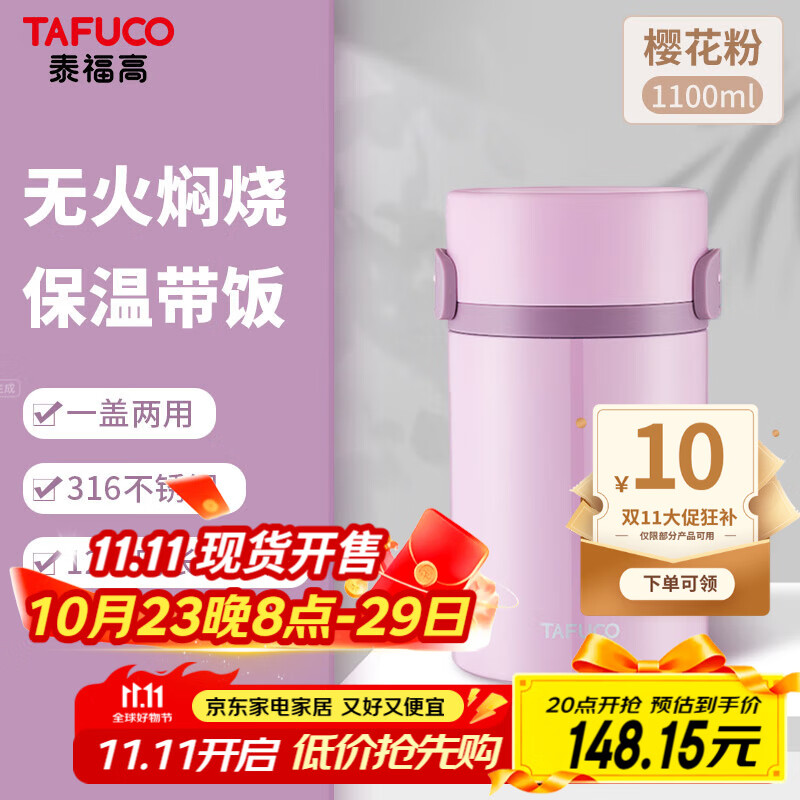 百亿补贴:泰福高保温饭盒女双层焖烧杯家用大容量汤桶便携闷烧壶超长保温桶