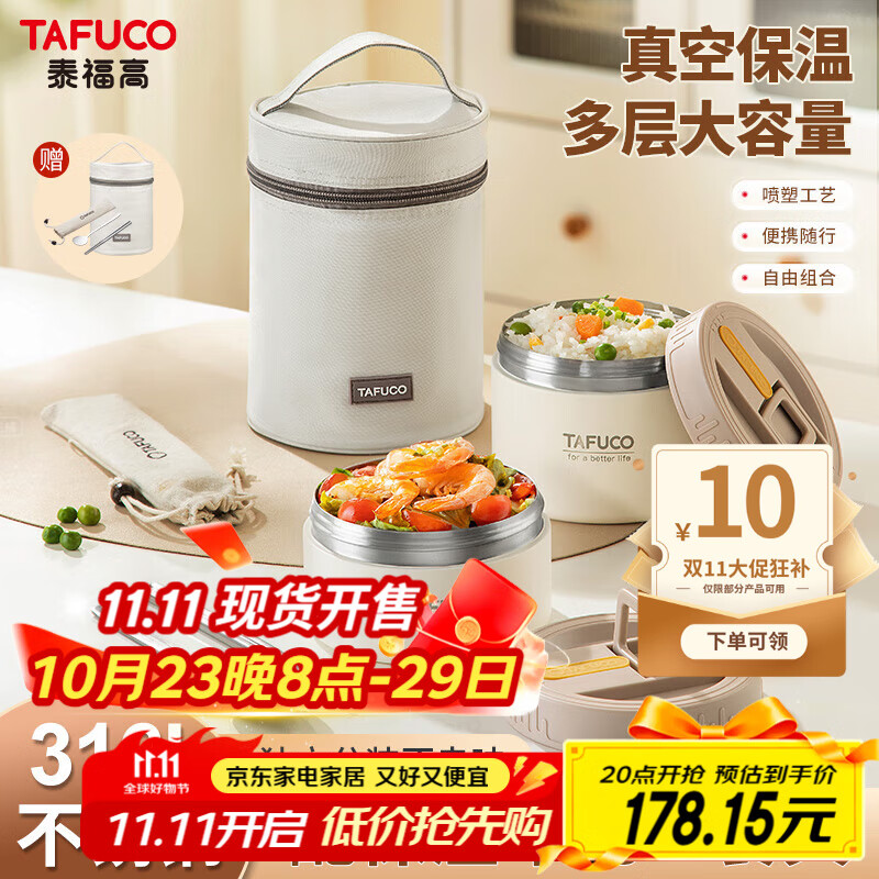泰福高(TAFUCO)真空保温饭盒316L不锈钢上班族带饭便携餐中小学生便当盒2层T5395