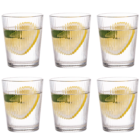 青苹果无铅玻璃水杯 竖纹漱口杯茶杯牛奶杯啤酒杯6只装 饮料杯