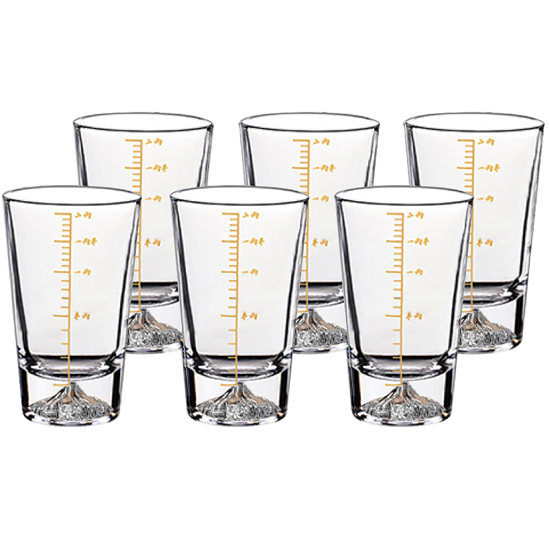 青苹果二两杯白酒杯套装 加厚无铅水晶玻璃带2两刻度观山杯冰山底 6只装