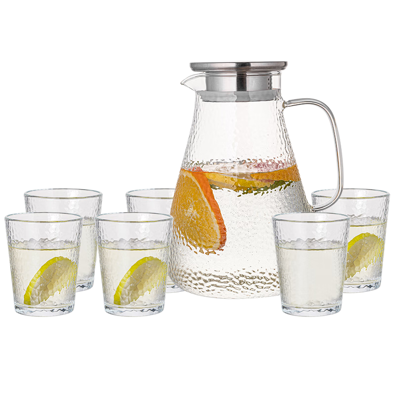 青苹果水壶水杯套装 凉水壶冷水壶锤纹耐热玻璃嘟嘟壶*1锤纹玻璃杯*6