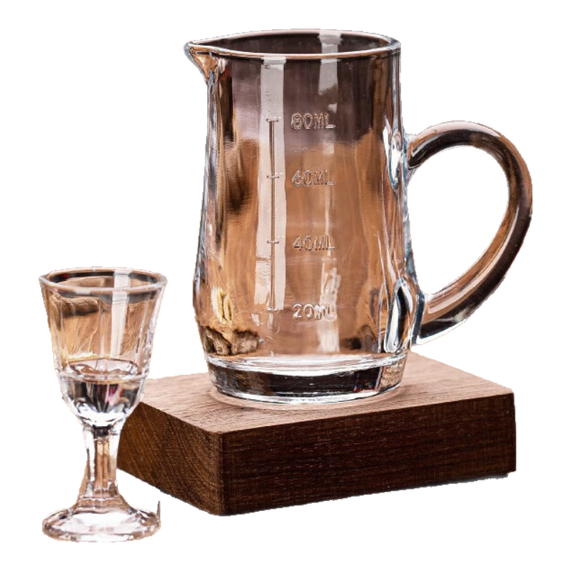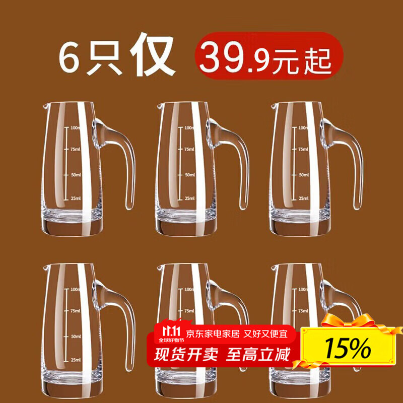 青苹果饭店用白酒杯分酒器套装家用小号量酒器壶玻璃醒酒器带刻度 直升分酒器100ML/6只装+白酒杯6只+竹木杯架