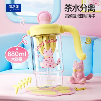 百亿补贴:哈尔斯水杯超大容量夏季带把手吸管杯女学生可爱高颜值玻璃水杯
