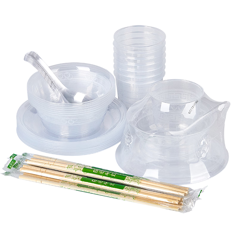 一次性碗筷碟杯勺套装餐具加厚加硬航空环保户外出游露营饭店酒席 50套 赠50双一次性筷子