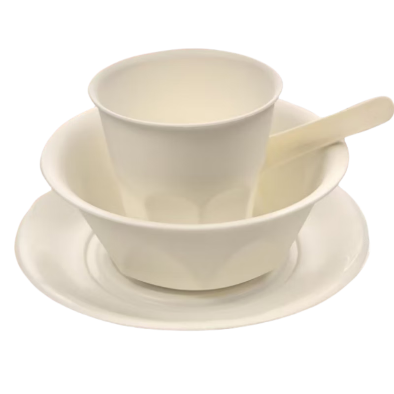 康恩嘉一次性稻壳餐具套装可降解10套独立包装送筷子四合一火锅餐 白色稻壳碗【碟碗杯勺】+筷子 1包【10套装】