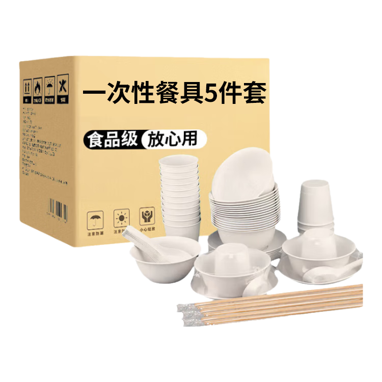 星坊一次性餐具套装碗筷子勺子杯子碟盘子野餐露营餐具20套