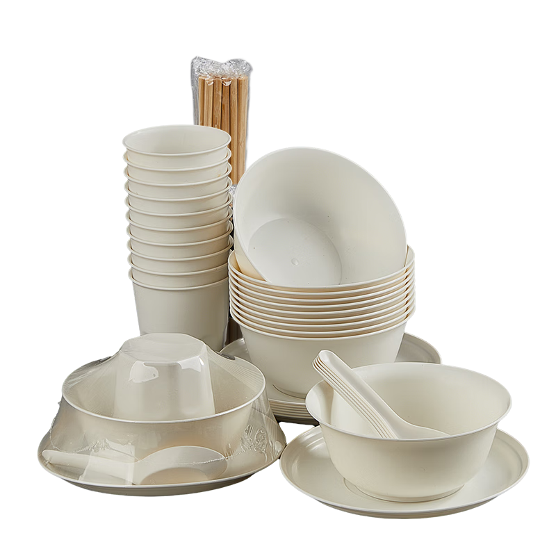 蓝自然玉米淀粉一次性碗筷餐具套装20人份五件套(碗+筷子+杯子+勺+盘)