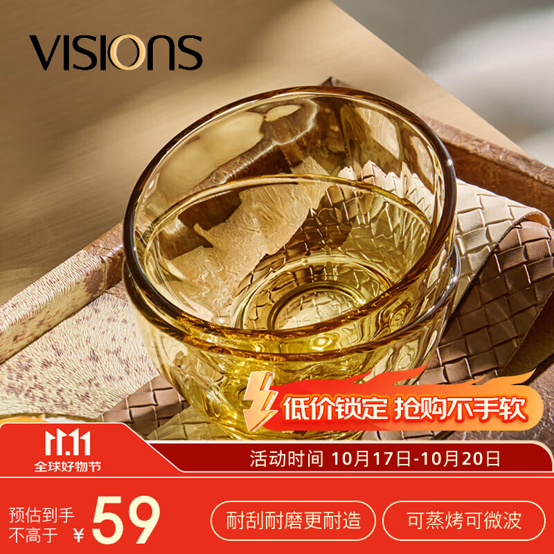 21.16元 康宁(VISIONS)晶炫餐具套装高硼硅耐热玻璃碗具2只装微波炉可用米饭碗套装