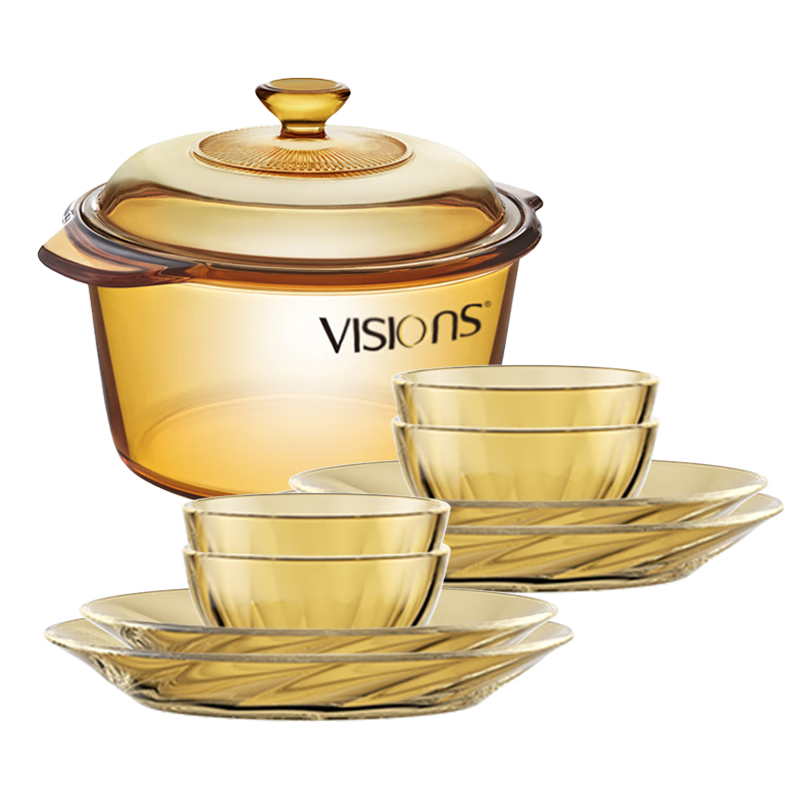 康宁3.2L耐热汤锅玻璃锅和8头耐热玻璃餐具套装碗碟套装 3.2L汤锅+8头餐具 锅具餐具