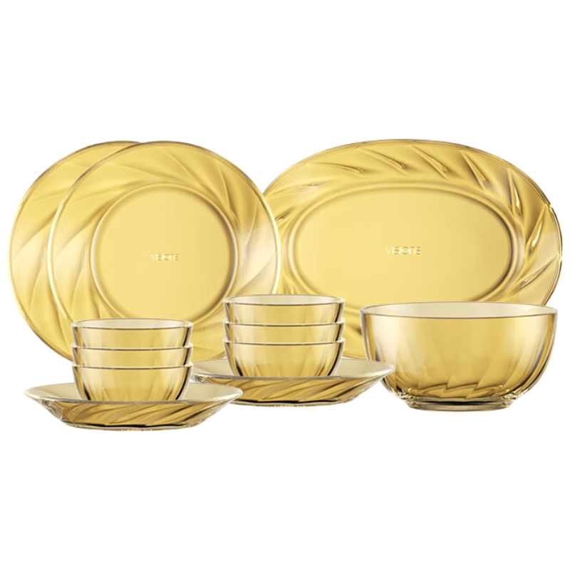 百亿补贴:康宁(VISIONS)晶炫螺纹高硼硅玻璃餐具套装12件碗碟套装4-6人微波炉可用