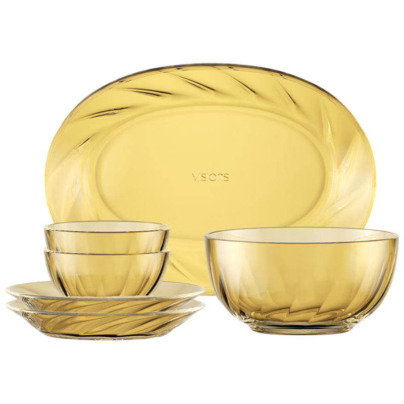 百亿补贴:康宁(VISIONS)晶炫螺纹高硼硅玻璃餐具套装6件结婚乔迁之喜实用高级感礼盒