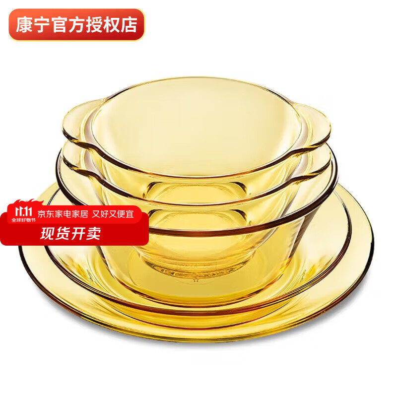 康宁餐具 5头琥珀色耐热玻璃餐具套装 碗饭碗双耳碗盘子碗碟套装 百丽餐具 5头