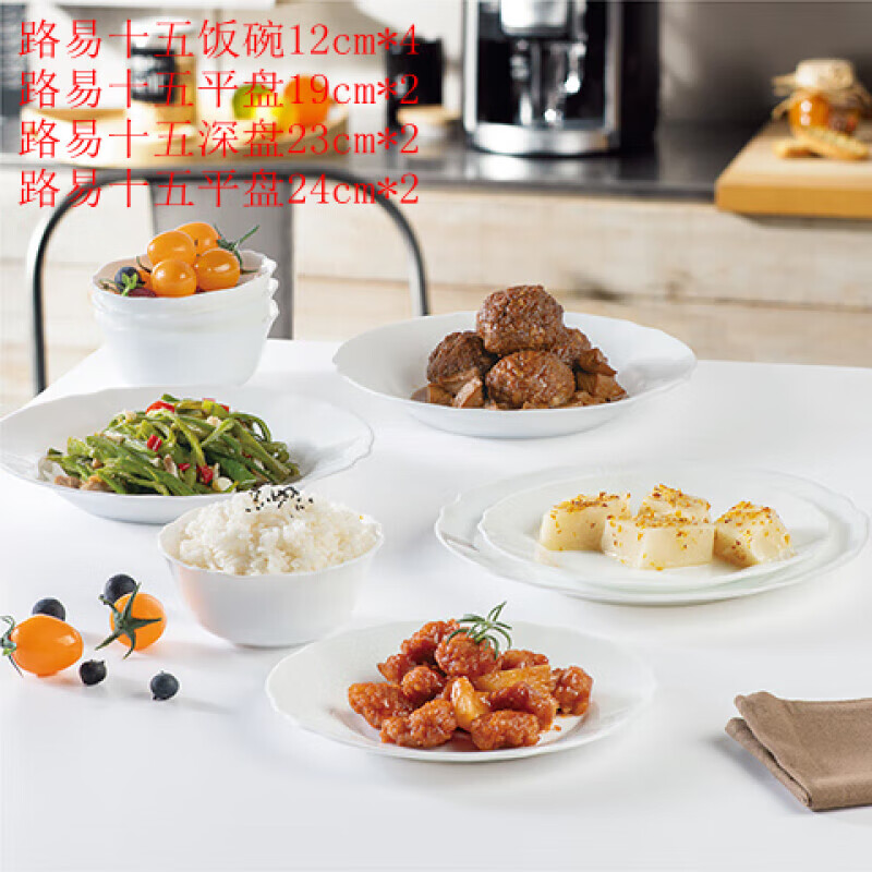 乐美雅路易十五餐具盘碗碟套装无铅白玉玻璃耐高温饭碗十件套