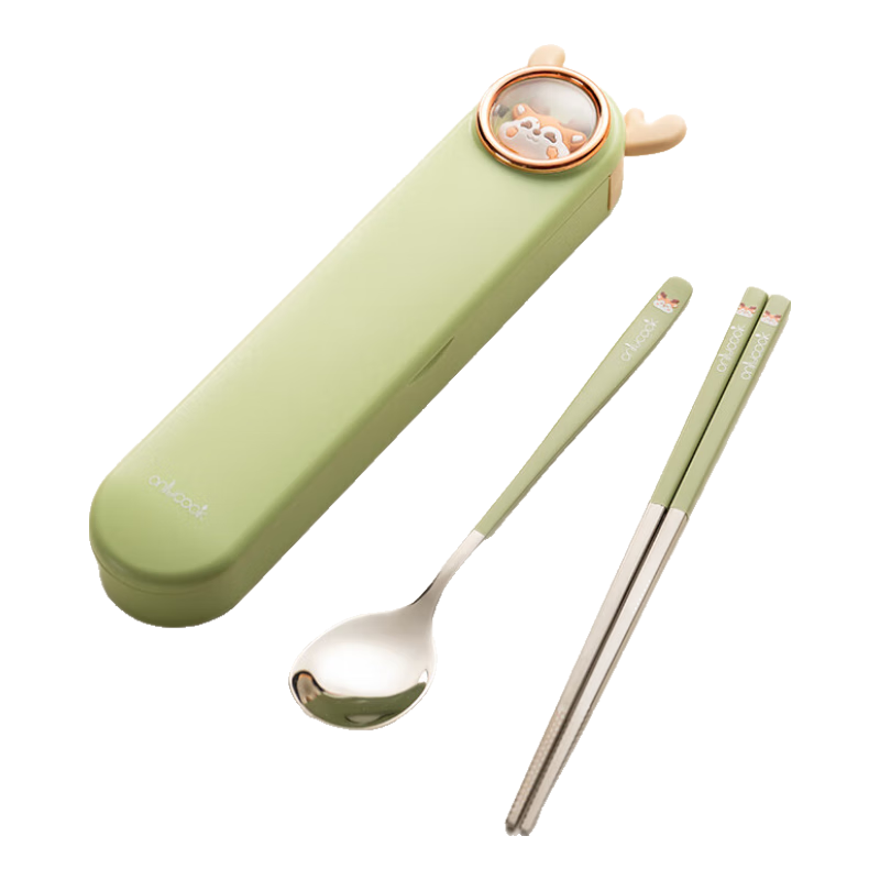 onlycook304不锈钢便携餐具学生儿童筷勺套装筷子勺子收纳盒-小鹿