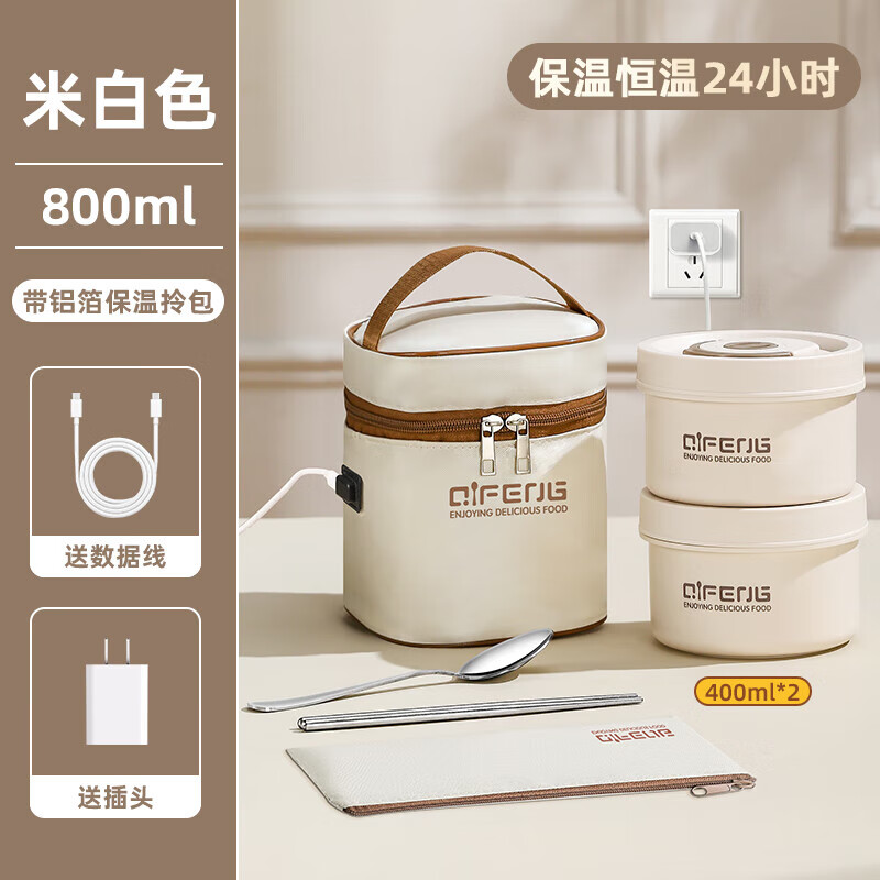 OQB德国保温饭盒陶瓷大容量可加热充电超长24小时成人儿童专用自带袋 0.8L 【2大】陶瓷+筷勺+袋 2层 72小时以上学生上班上学专用