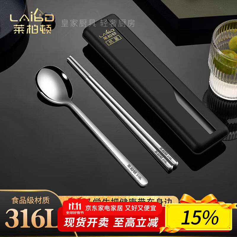 莱柏顿316L不锈钢餐具便携旅行套二件套装勺叉学生成人上班族勺子筷子 原钢色【筷+勺】316L钢