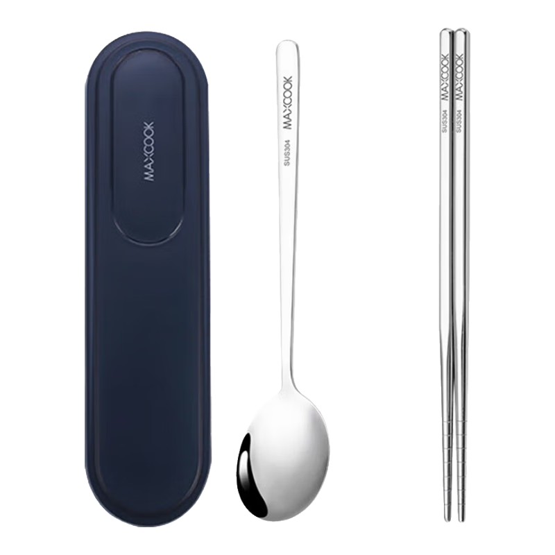美厨(maxcook)304不锈钢筷子勺子餐具套装 便携式筷勺三件套 午夜蓝MCGC0673