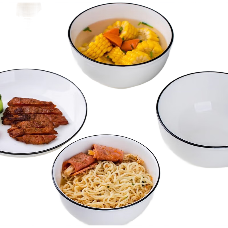 餐具家用组合简约清新黑线陶瓷餐具碗盘勺筷套装纯黑线餐具套装 24件套(6碗4盘6勺6筷1汤碗1大勺)