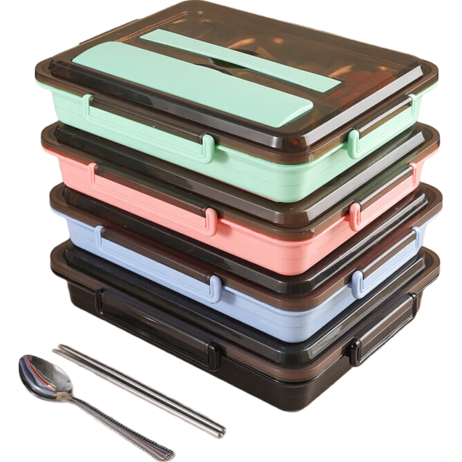 304不锈钢分格大容量保温饭盒学生上班族食堂带盖餐盒防烫便当盒 304材质【4格+筷勺】 1800ml 北欧蓝