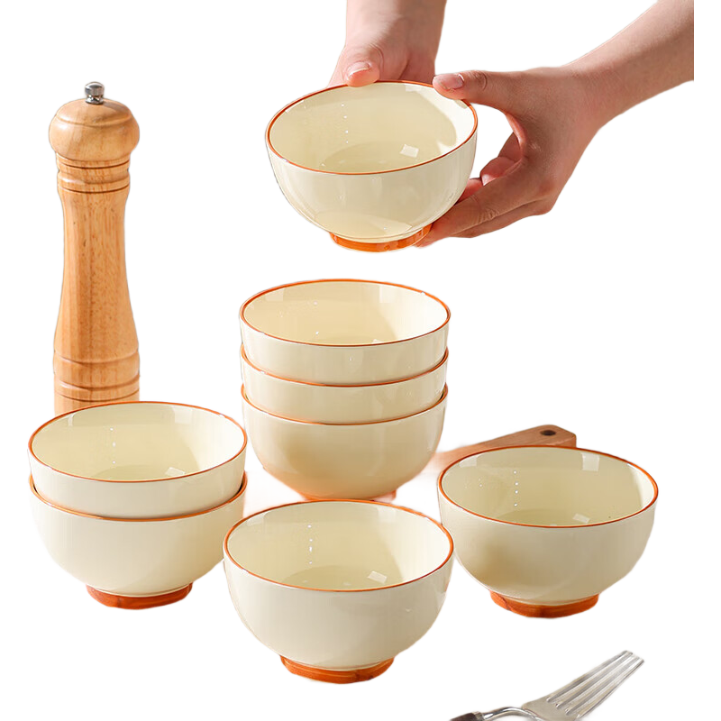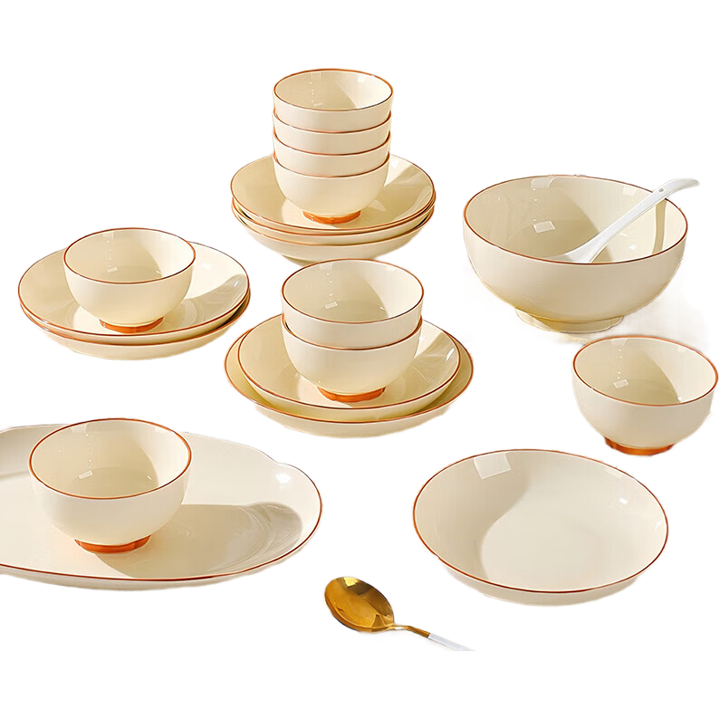 奶油风茶卡家用高颜值饭碗菜盘高温陶瓷碗盘餐具套装 茶卡4碗4盘4勺4筷 16件套