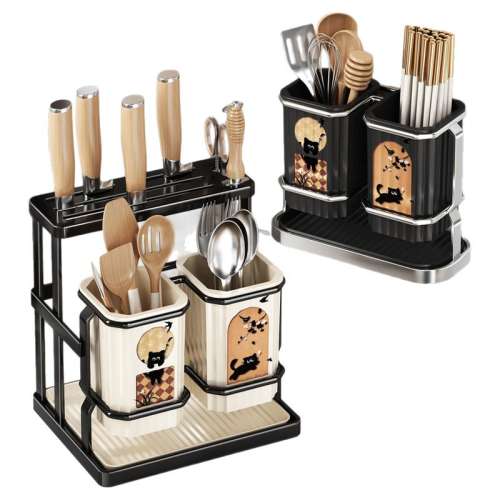 帅仕 厨房不锈钢刀架菜刀收纳架筷勺用具置物架刀座台面沥水架