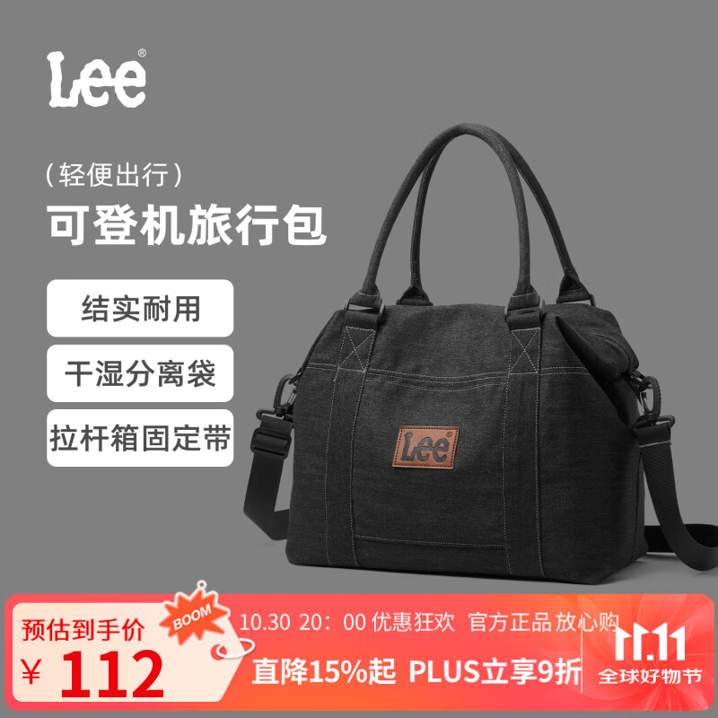 LEE短途旅行包男女大容量运动斜挎包干湿分离健身包休闲单肩包手提袋 黑色(牛仔布)