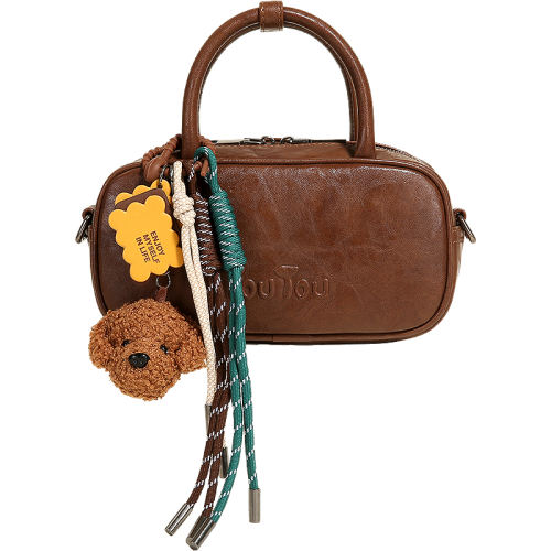 巧克力棕 TOUTOU新款保龄球包大容量手提波士顿包小众百搭通勤单肩斜挎包女