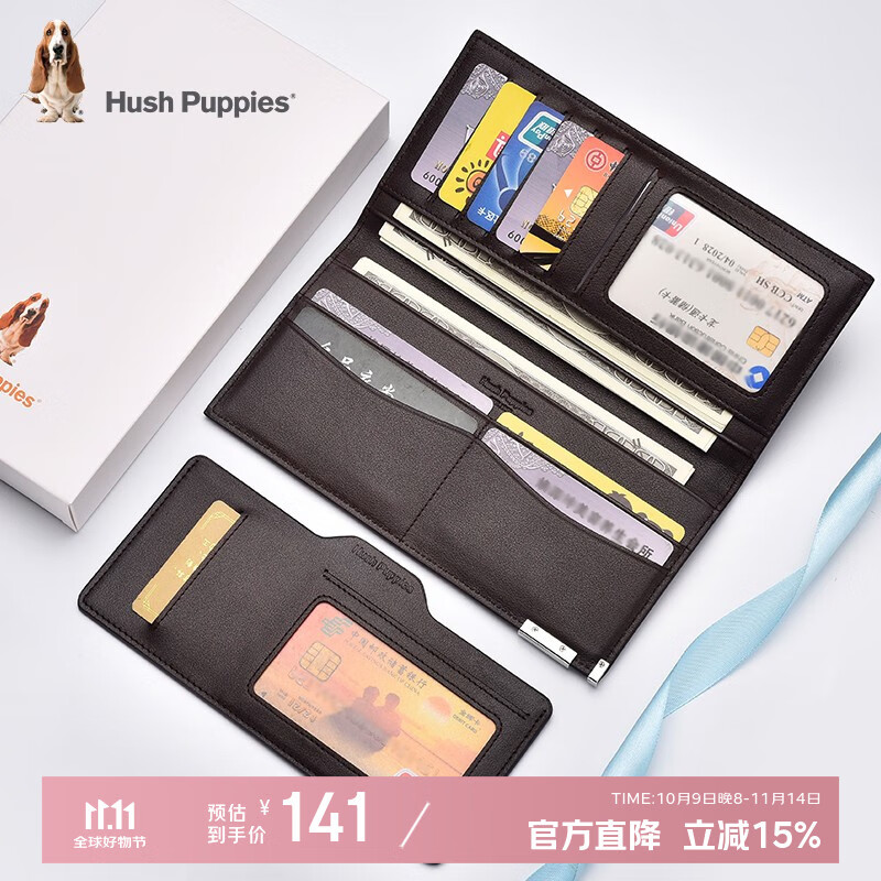 暇步士(Hush Puppies)男士真皮长款钱包休闲时尚可拆分两件套票夹青年头层牛皮手薄钱夹潮 啡色