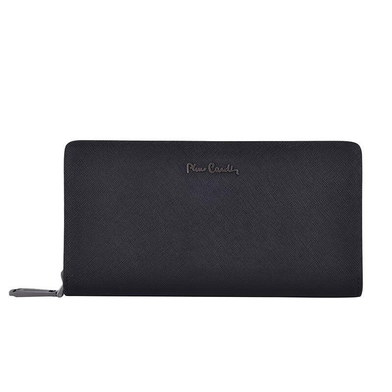 皮尔卡丹男士手包长款牛皮钱包拉链手拿包礼盒送礼礼物黑色
