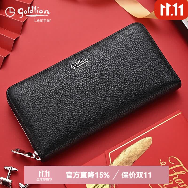 金利来(Goldlion)手包男士长款拉链钱包真皮休闲手抓手拿包多卡位软牛皮生日礼物 大号【官方授权 假一赔十】