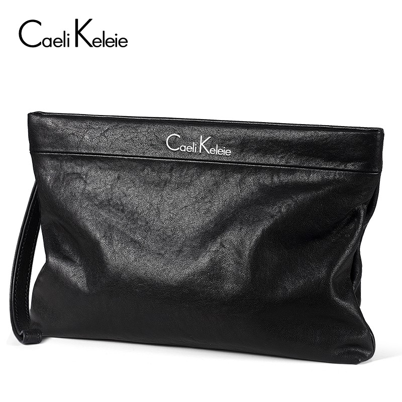 CaeliKeleie男士手包真皮手包男手拿包头层牛皮大容量手抓包软皮信封包K333 黑色大号