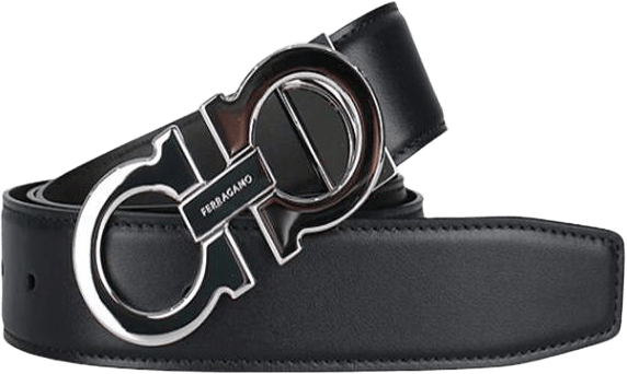 FERRAGAMO 菲拉格慕 黑色自由裁剪商务双面皮带