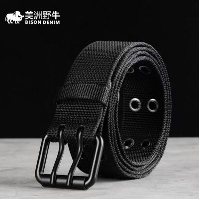 百亿补贴:美洲野牛正品免打孔铆钉腰带黑针扣腰带宽帆布腰带皮带男简约潮人