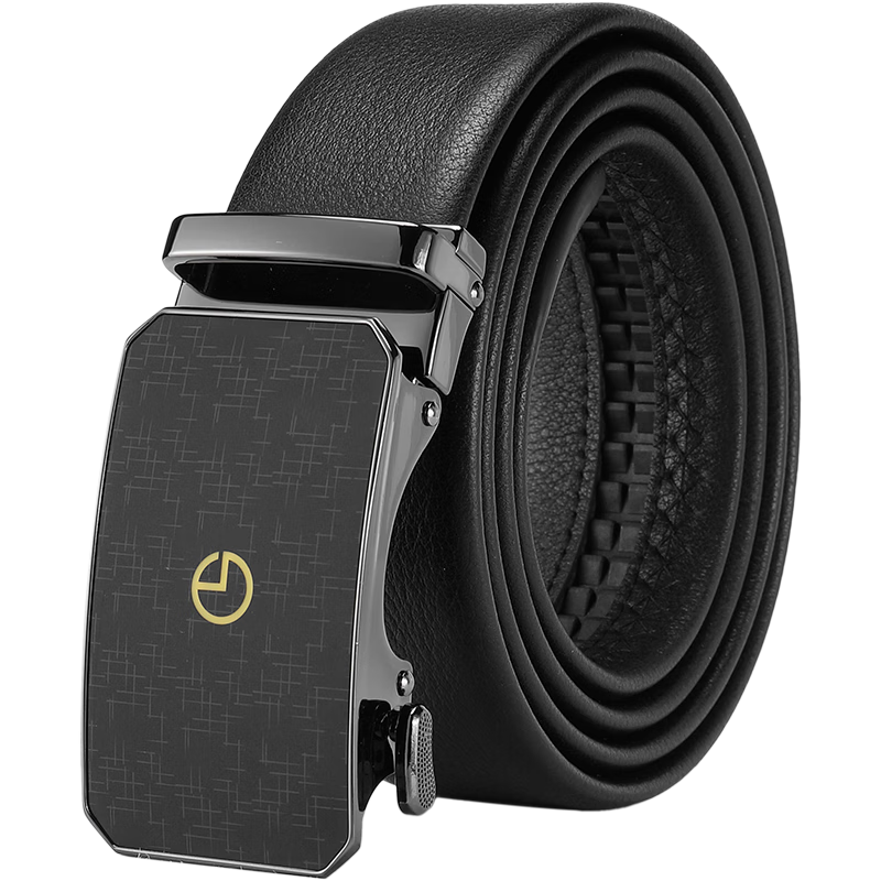 金利来皮具男士磨砂自动扣头层牛皮商务男士腰带皮带礼盒黑铬-99125cm