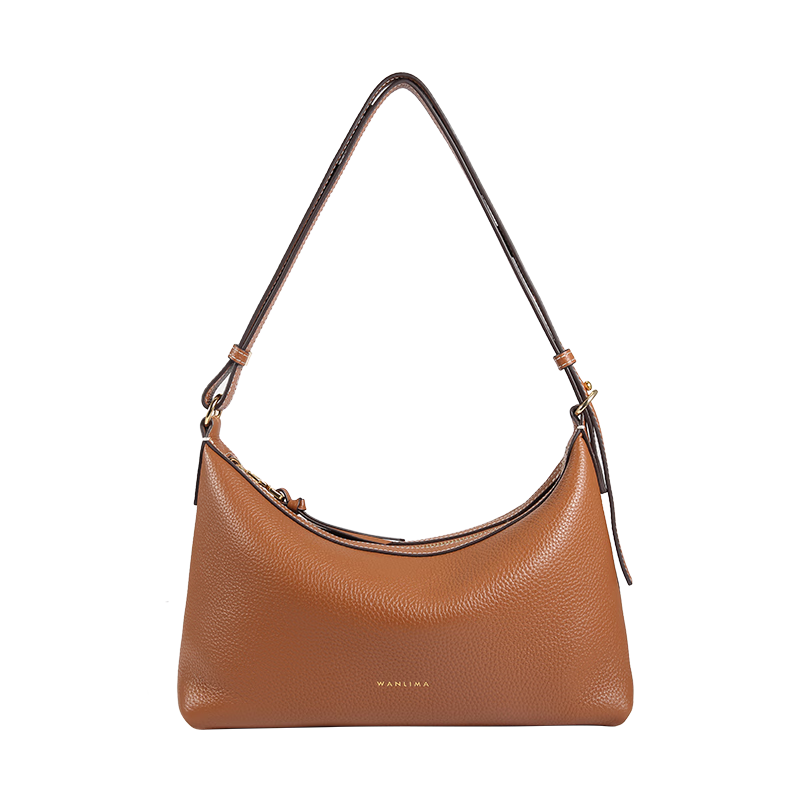 万里马新款腋下女包休闲通勤牛皮女包时尚单肩斜挎包手提包送女友礼物 秋茶棕