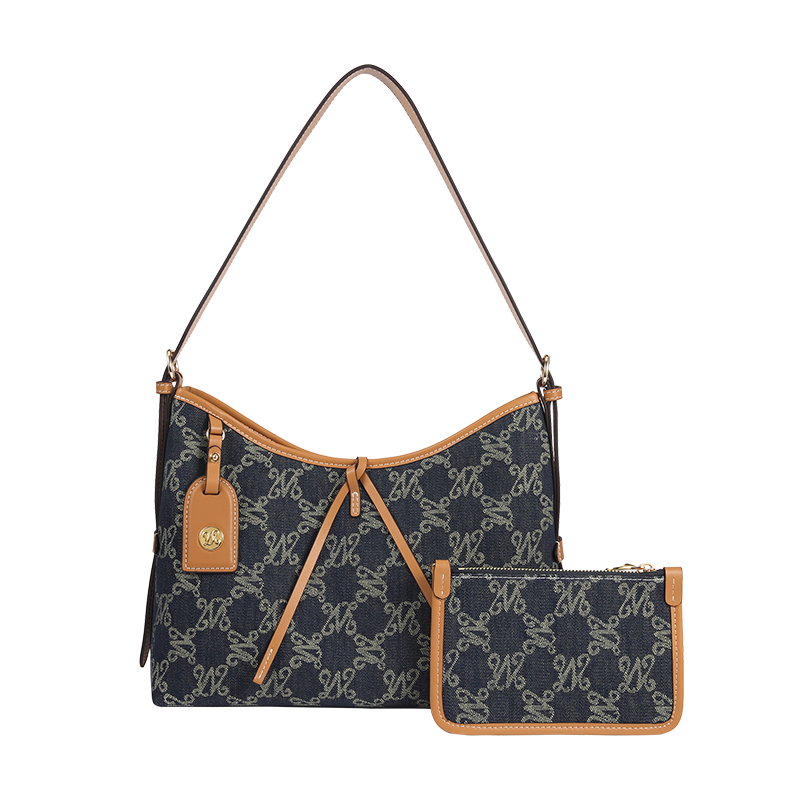 浅蓝/杏仁棕 万里马2025新款HOBO大翅膀托特包休闲通勤老花包手提单肩腋下包女