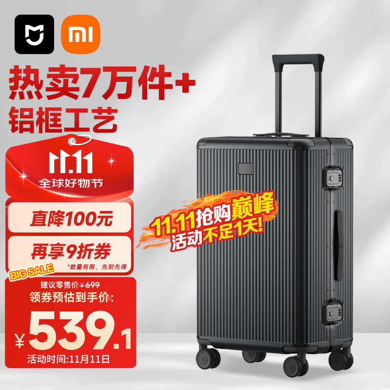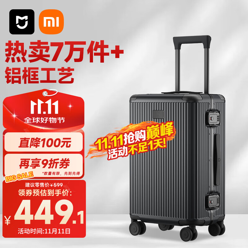 米家小米行李箱24英寸铝框拉杆箱大容量旅行箱男女万向轮密码箱子黑色