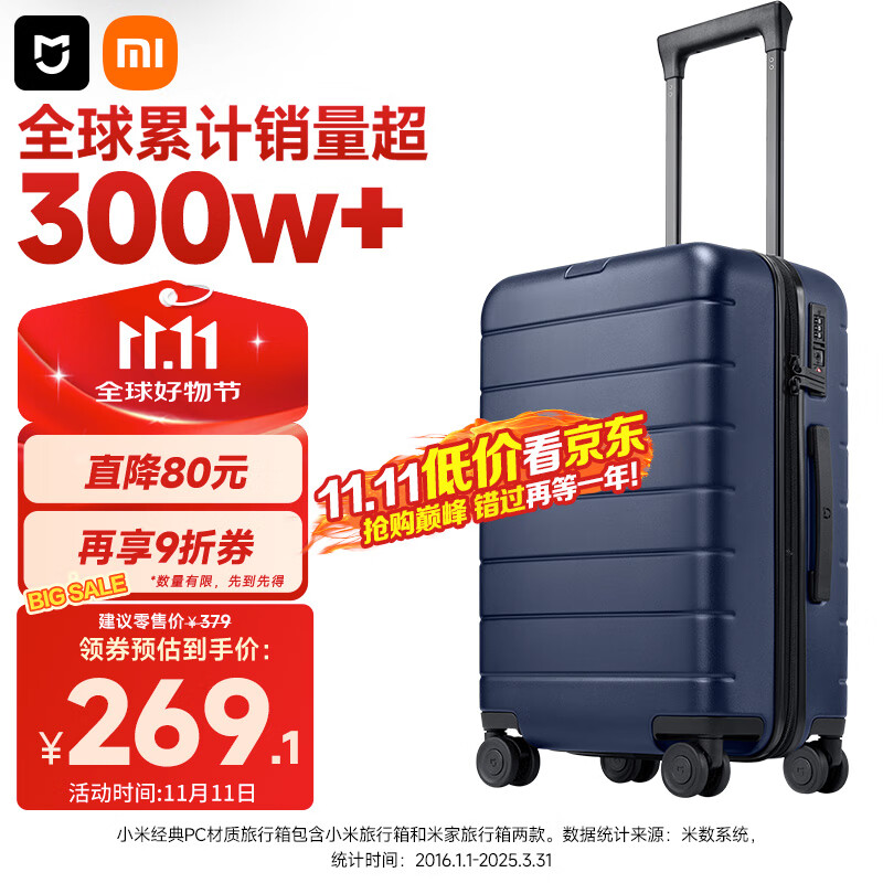 米家小米行李箱20英寸拉杆箱可登机箱PC旅行箱男女小型密码皮箱子蓝色