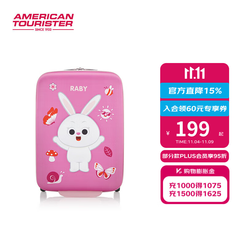 美旅大容量儿童行李箱童趣卡通小动物旅行箱轻便拉杆箱QW9 兔子 17英寸