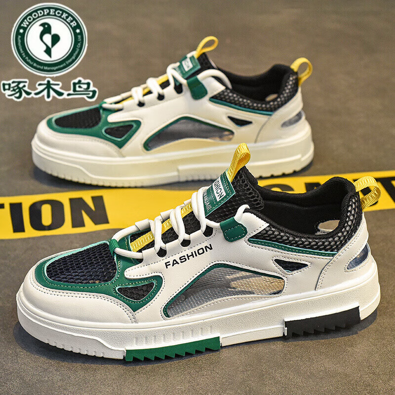 百亿补贴:啄木鸟凉鞋男款夏季外穿青少年网面透气网眼镂空运动休闲包头洞洞沙滩鞋 白绿【品牌特价捡漏】 39